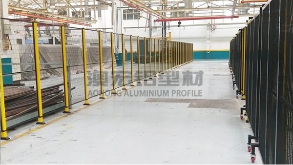 铝型材围栏分为移动围栏和固定围栏,我们常见到的是固定围栏,其实很多地方也需要移动围栏,更加灵活,可以根据需求来变动场地。今天澳宏给大家带来的是铝型材移动围栏。